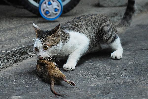 从那以后,我家再也没有老鼠出没过,除了捕杀的,剩下的估计都含泪搬家了。不过,在猫抓老鼠时,有一个很有意思的行为,那就是有时候猫抓住老鼠,不会立即吃掉,而是会玩一会,这让老鼠很崩溃,每当抬起头来,就被猫一爪子拍下去,玩够了,再一口咬死。