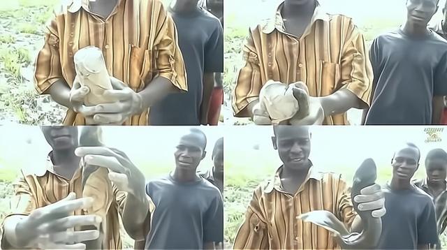 从土里挖鱼其实并不稀奇,因为在非洲,土里挖鱼是许多土著在旱季获取鱼的主要方式之一,到了旱季,一些有经验的非洲土著会扛着锄头,去一片土地都要干裂的田里,卖力的刨,不一会就能刨到一个椭圆形的土块,打开土块,一条活蹦乱跳的鱼就出现了。