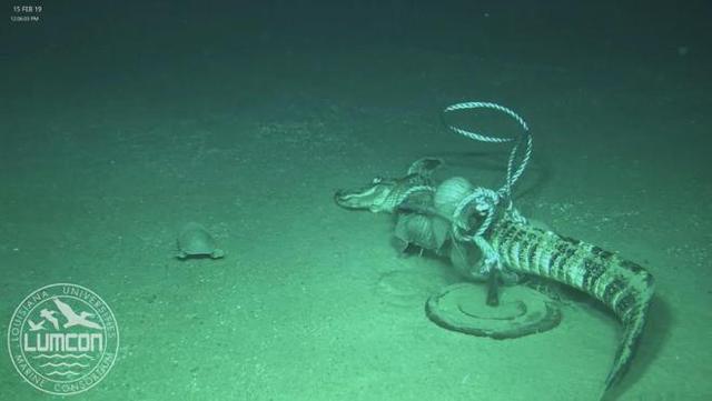 2019年的二月份,一艘船驶进了墨西哥湾里。这船行踪有点诡异,他开一会儿停一会儿,而且每次停下的时候,就会把一大块什么东西给沉到水里去。这些东西乍一看像块木头,仔细一看呢,不得了,竟然是条大鳄鱼,被绳子捆着,还夹了块石头。