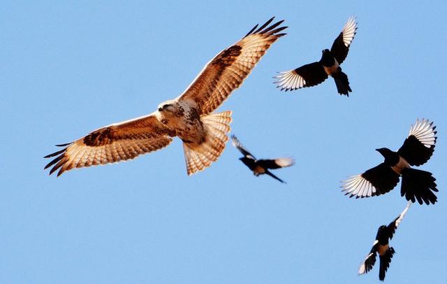 防御毒蛇好办,扑腾扑腾翅膀就飞走了,留下蛇在原地凌乱。但是老鹰就不好对付了,毕竟都是在天空飞行的同类,况且老鹰的捕猎能力要比喜鹊强太多倍。要是被老鹰盯上了,那可就比较麻烦了。
