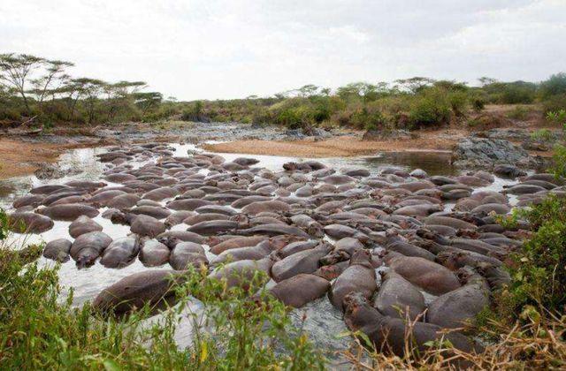 每天,4000多头河马都会产生将近8500公斤的排泄物,整个河水犹如成为了“粪坑”。在旱季时,水流速度较慢,河马粪便沉积在水塘下方,有些水塘在旱季还会成为池塘,与下游河道没有连接。
