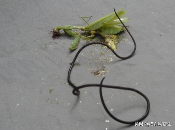 这个东西当初是以虫卵形式,存在一些微小的甲虫之类的体内,当螳螂捕吃到这样的甲虫后,铁线虫自然会钻入螳螂身体里,然后慢慢的长大,而且还可以支配螳螂的行为方向。一旦铁线虫长大了,需要到外面的大千世界一展身手了,就会把螳螂驱使到一个地点,然后从其肛门钻出,挥一挥手,不带走一片《云彩》。