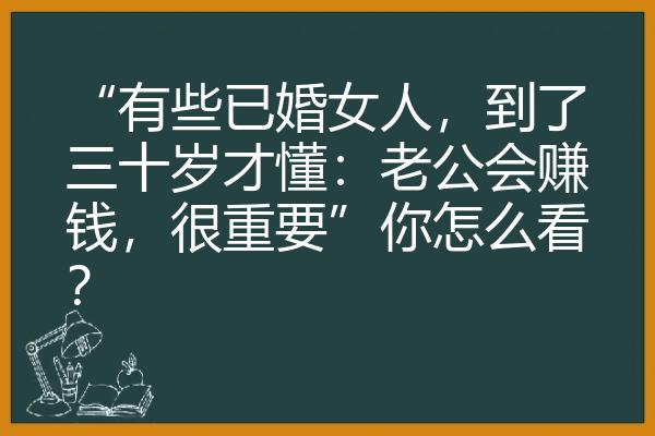 “有些已婚女人,到了三十岁才懂:老公会赚钱,很重要”你怎么看?