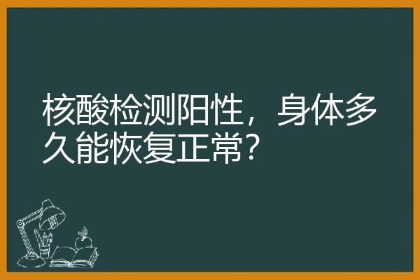 核酸检测阳性,身体多久能恢复正常这个问题,应该看人的体质,免疫力,有没有基础病等等有关,有些人无症状感染,没有出现任何症状,就变阴。有些人出现咳嗽,发烧等轻症,过几天好,还有些人需要好长时间才能恢复正常。