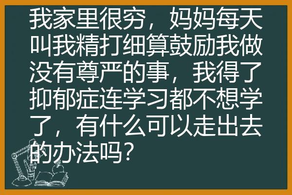 我家里很穷,妈妈每天叫我精打细算鼓励我做没有尊严的事,我得了抑郁症连学习都不想学了,有什么可以走出去的办法吗?