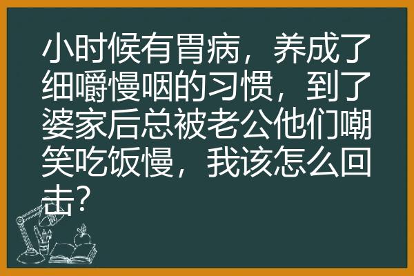 小时候有胃病,养成了细嚼慢咽的习惯,到了婆家后总被老公他们嘲笑吃饭慢,我该怎么回击?