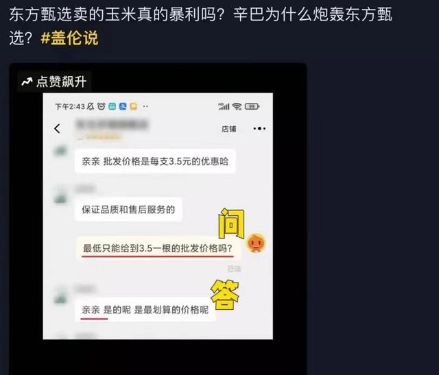 但是,在他几乎大功告成的时候,这个农嫂公司却从背后捅一刀,过河拆桥,直接向粉丝们挑明,他们是向东方甄选供货的供货商,而每个玉米只卖3.6。