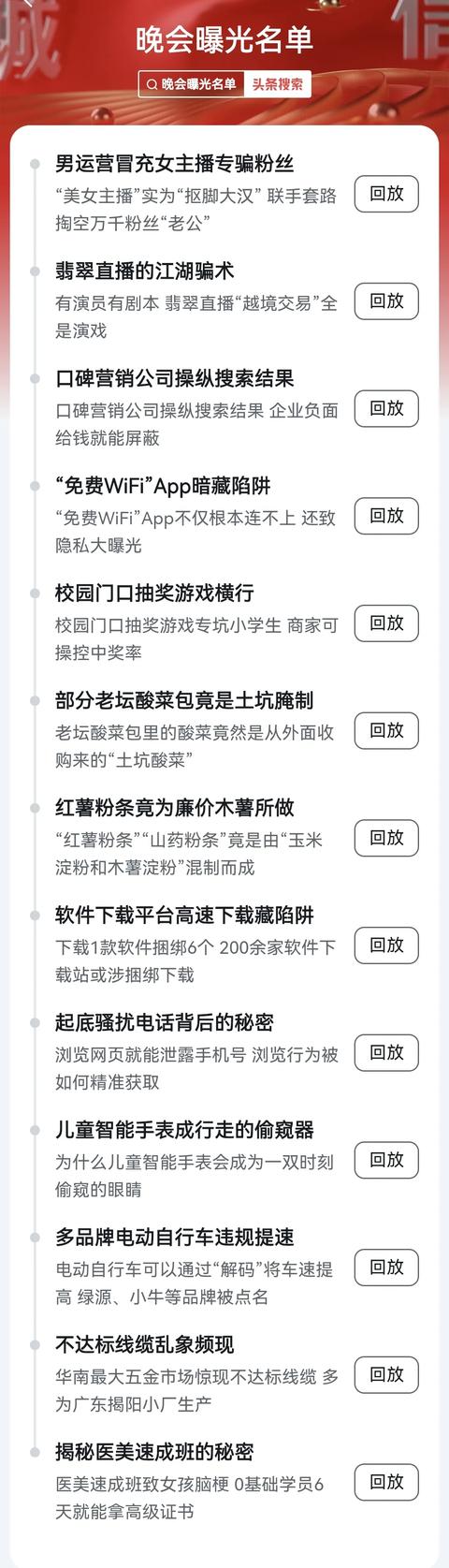 今年315晚会总共曝光了13个问题,但这里面并没有相关网贷暴力催收的报道。
