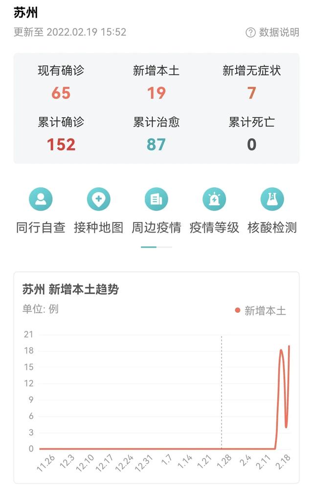 最近几天时间苏州出现了好几例确诊病例,其中2月18日新增确诊病例19例,现有确诊病例65例。