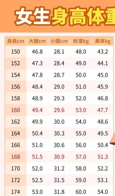 回到合适体重送上标准体重图一张,美女们自己对照下吧。