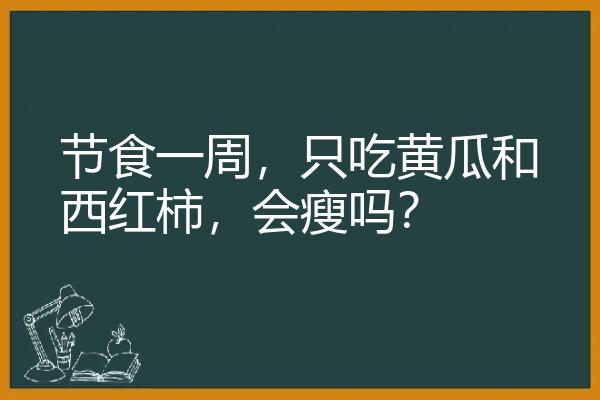 只吃黄瓜和西红柿,这是基本属于绝食一周,不是一般的节食,因为黄瓜和西红柿热量都很低,主要就是水分,只吃黄瓜和西红柿,吃到撑,也摄入不了太多热量,比如你吃2斤黄瓜(热量约160千卡),热量才和2个鸡蛋差不多,而营养价值还不如两个鸡蛋。绝食一周,热量摄入微乎其微,远远不能满足身体需要(普通成人每天光基础代谢也在1600千卡左右),当然就是会瘦的。