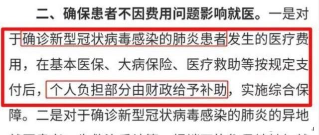 对于确诊的新冠患者,在基本医保、发病保险等按规定支付后,个人负担部分是由我国财政承担的。