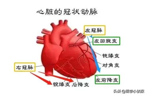再比如说今天是心脏左冠状动脉的一个分支发生了心梗,疏通了,不堵了,过了三五年,右冠状动脉的一个分支堵了,那之前的心梗算不算治好呢?因为给我们人体心脏供血的冠状动脉不是像往我们大家家里的自来水管输送水一样,只有一条管道,它包括有左右两条冠状动脉,同时每根冠状动脉又像下图一样分为好几个分支,每个分支对应保证我们心脏每个部分的血液供应,堵了同样可能引发心梗!