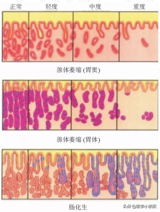 1. 慢性萎缩性胃炎。这里的萎缩指的是胃黏膜固有腺体萎缩,数量减少,功能下降。可怕的是它可能会有肠上皮化生,胃癌前奏