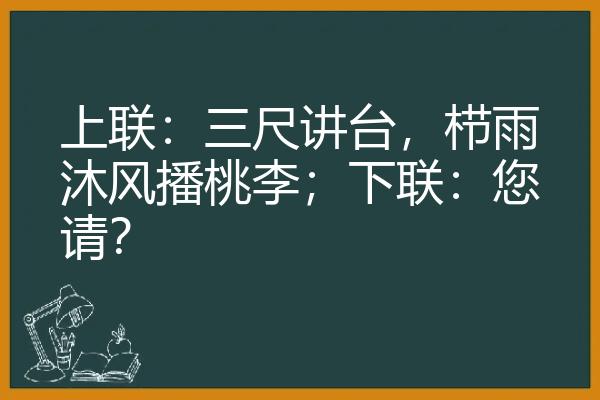 上联:三尺讲台,栉雨沐风播挑李。