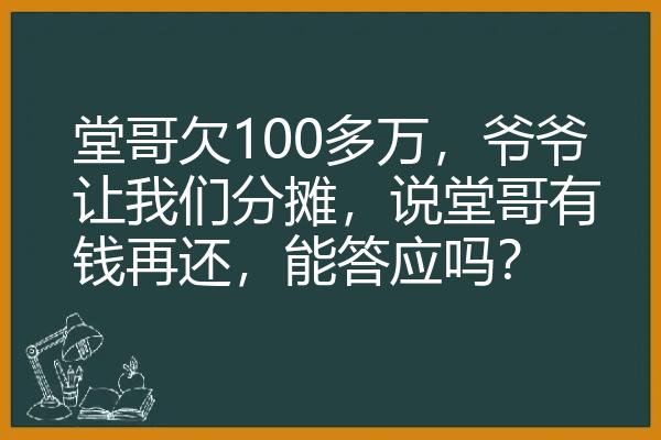 堂哥欠100多万,爷爷让我们分摊,说堂哥有钱再还,能答应吗?