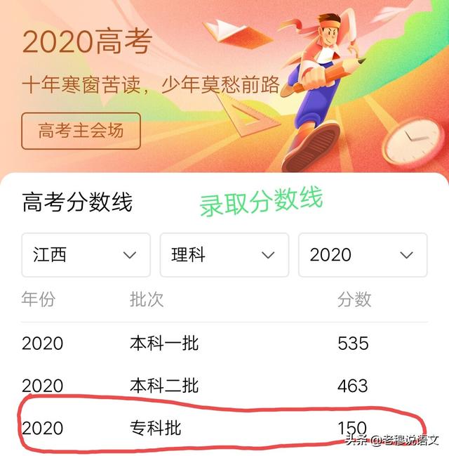 举个例子,比如在江西地区,专科的录取分数线为150分。
