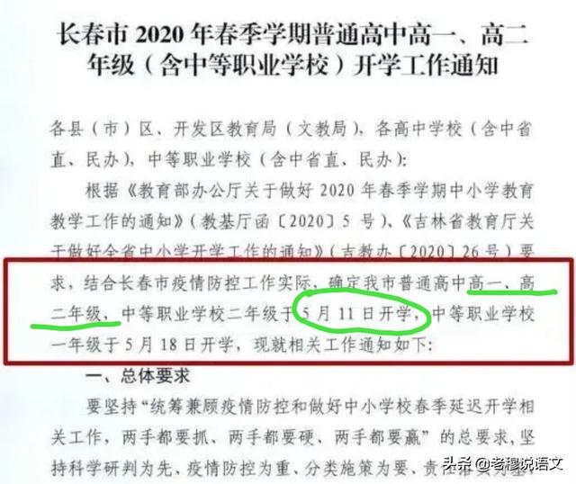早在4月30日,长春市教育局就下发通知,确定长春市普通高中高一、高二年级于5月11日开学。