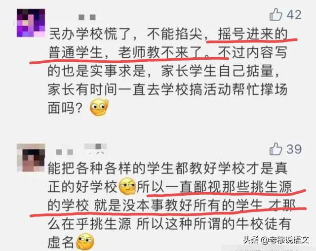 有网友表示:能把各种各样的学生都教好学校才是真正的好学校,所以一直鄙视那些挑生源的学校……