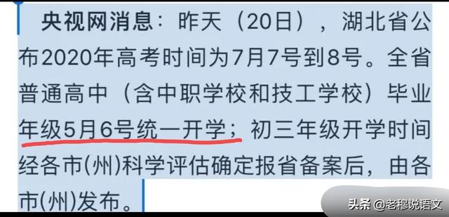 湖北省开学时间和高考时间已经公布:
