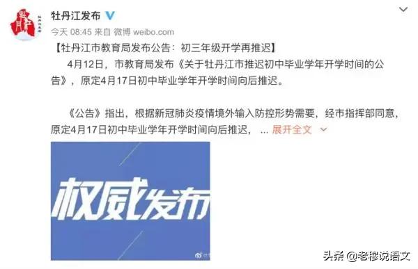 在这样的情况下,先是哈尔滨和牡丹江宣布推迟初三开学时间。