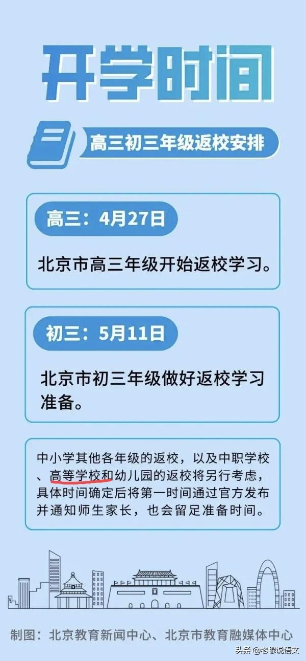 【1】北京市高三年级4月27日返校,初三年级按5月11日做好返校学习准备。
