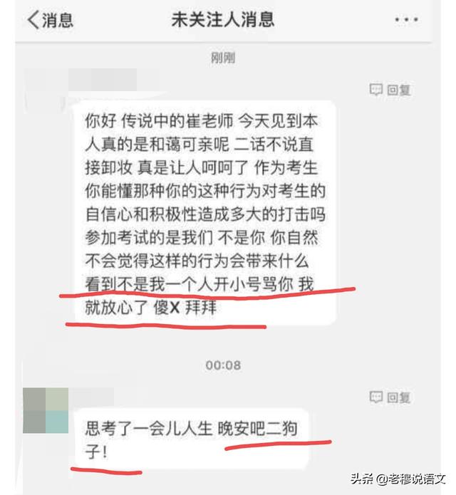 而负责卸妆的催老师就被考生辱骂了……