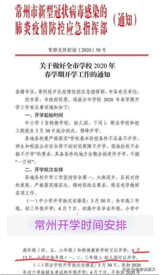 比如常州,4月13日小学一二年级就可以开学了。