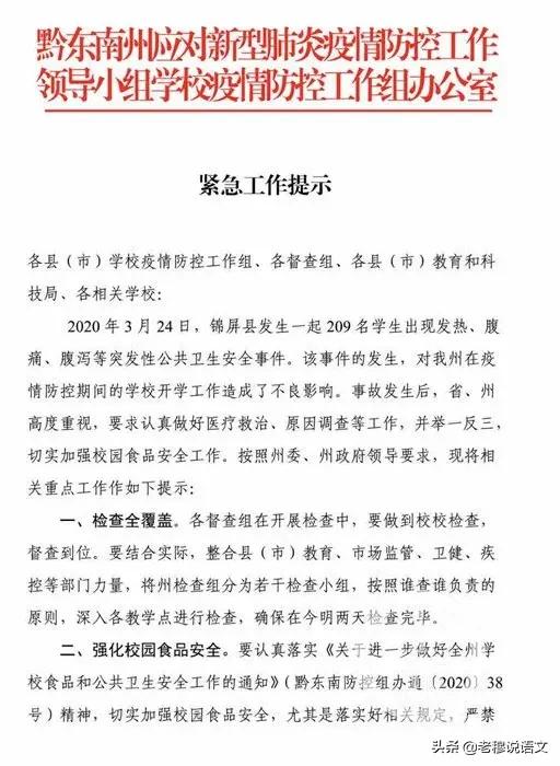 贵州开学也算是不太顺利的。贵州锦屏县3月 24 日发生的那起209 名学生出现发热、腹痛、腹泻事件,肯定会给贵州开学政策的确定带来比较大的影响,虽然已经明确不是因疫情引起的事件,但从让学生家长放心这个开学必备条件看,很多家长肯定是更不放心了。