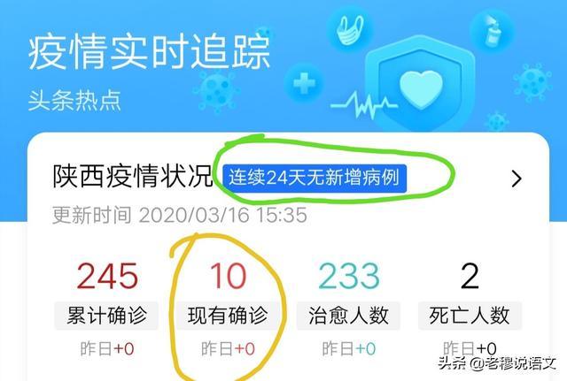 陕西昨日新增确诊病例为0,累计确诊病例为245,治愈人数233例,死亡2例,还剩10例。