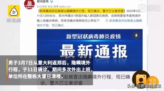 背景介绍:不久前,河南郑州一市民郭某3月1日出国,先后辗转意大利等国家,而后从北京做火车回到郑州。在对他进行跟踪调查时,他故意隐瞒行径,而后回家上班,直到确诊。据了解,与其有密切接触的人员达到23人,一时间郭某把自己至于舆论的漩涡。