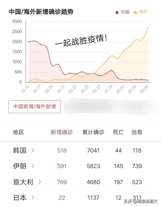 老穆最近关注了国际疫情状况,发现国外疫情感染速度呈上升趋势,需要引起我们的注意,一定要做好“外防”工作。