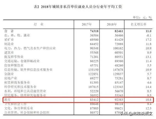记得2018年,教师的年平均工资收入,在全国19大行业中就排名第7了,达到92383元,还是比较不错的。