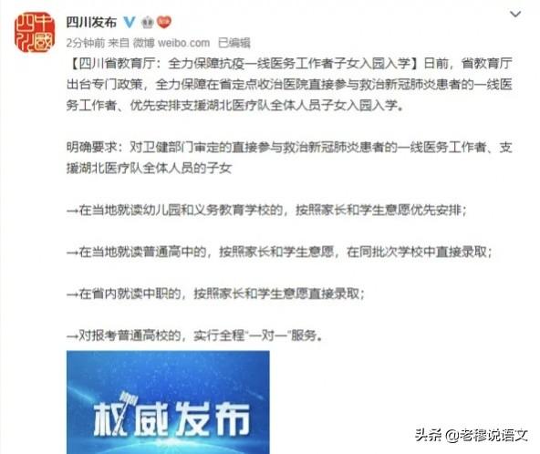 四川省教育厅: 全力保障抗疫一线医务工作者子女入园入学,如下图: