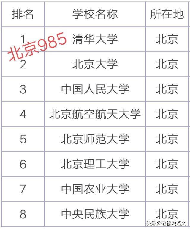 老穆有话说北京985大学,也就那么8所,各个都是不错的大学。
