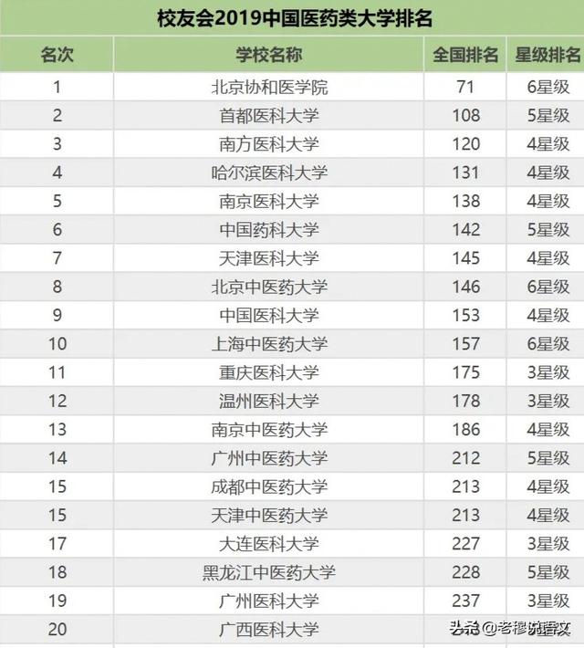 我们来看一下校友会2019中国医药类大学排名,如下图:说句实话,如果你能考入排名前十的大学,当个医生或许不难,其它的话,比较难!