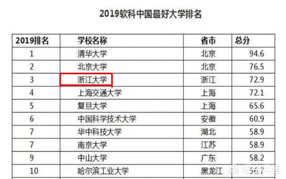 在2019软科中国最好大学排名中,浙江大学则高居第三位,可见其地位之高!