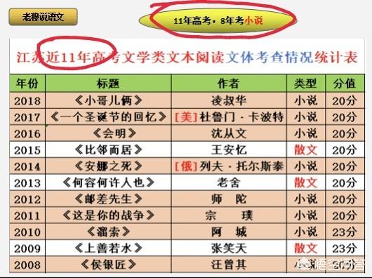 比如江苏高考,从2008——2018,11年8次考小说,可见小说的重要性!
