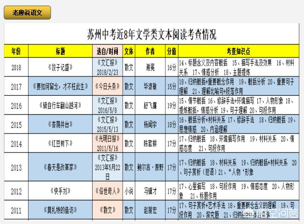 老穆支招一、苏州中考近8年文学类文本阅读列举