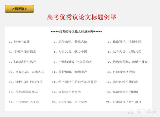 那么,如何才能够快速地写好一篇优质的议论文呢?我们不妨从“标题、开头、结构、论据和结尾”入手,彻底的征服议论文。