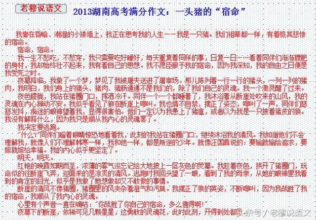有的考生看到了一头猪要“越狱”,还写出了高考满分作文——一头猪的宿命,穆老师截图给你看看: