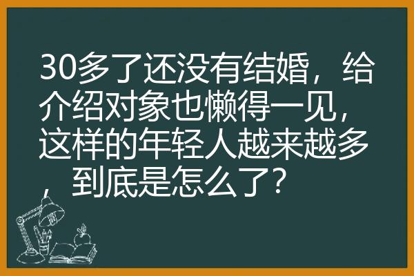 欢迎关注(智慧同同)头条号,我个人的知识,观点,经历,感悟掰开揉碎讲给你听,让你对身边的人和事更了解一些。如果喜欢我的回答,不妨点赞,关注,转发,收藏一下。30多了还没有结婚,给介绍对象也懒得一见,这样的年轻人越来越多,到底是怎么了?