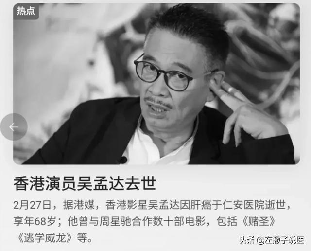 包括我本人在内的很多人都是看周星驰电影长大的,喜欢周星驰电影的人应该都会对吴孟达先生感到很亲切,正因为如此,吴孟达先生去世的消息会引起这么多人的关注。据他朋友田启文透露,吴孟达先生是在去年年底发现患上了肝癌,当时达叔正在为他的电影拍摄宣传海报,在拍摄海报的过程中突感胸口不适,去澳门检查后才得知患上了肝癌,但发现得还是太晚了,癌细胞已经开始了扩散,诊断肝癌后达叔没支撑了几个月就离开了这个世界。