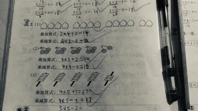 1⃣️你图上所示孩子的三道看图计算数学题为一种类型,要求是乘加和乘减列式计算,也就是乘加列式时只出现X、+符号,不许再有其它符号。