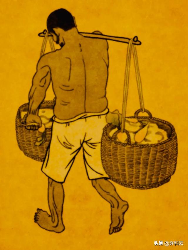 跑步走是技巧,利用扁担弹性少吃好多的亏,如果慢慢地走,路还是那么远,压在身上担子重量时间比跑步走长,更累。