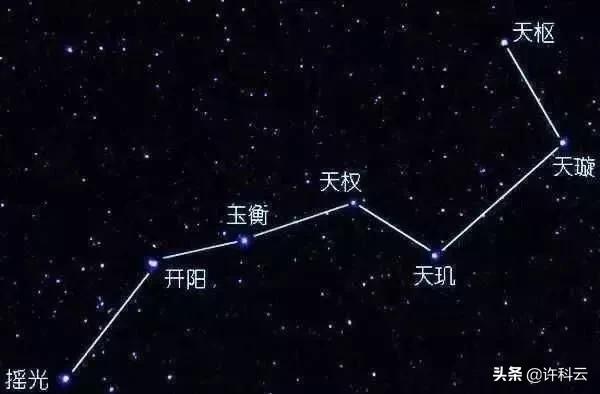 北斗星是个瓢,瓢口的一颗"天枢星"都是固定着指向北极星,瓢柄转的幅度太大了,而瓢口的一颗星指向北极星不变(⬇️上框边缘)