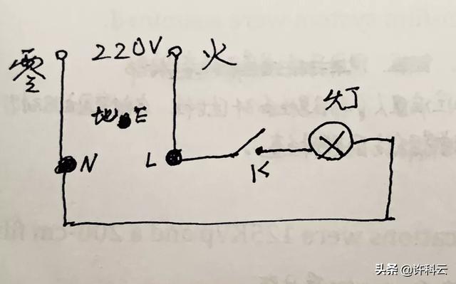 2⃣️开关的接线为:开关K的左边接L火线、开关下桩头右边入灯泡、