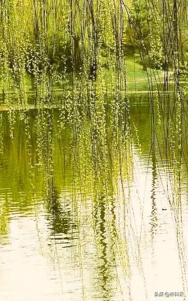 由此就很明白了一幅如诗如画的画面,请看⬇️银面水中柳条倒影扭曲与垂柳拖长!