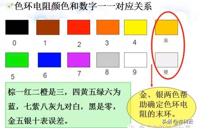 *第一环为个位数,第二环为十位数,第三环为要乘以数的倍数,(注:第三环也有金色的.计数时小数点向左移一位如0.01就移成0.001如果第三色为银色小数点向左移两位)
