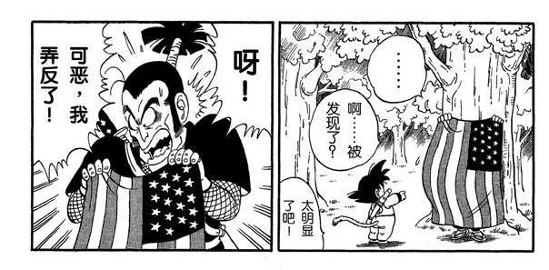 日本躲在美国背后忍者是日本文化独有的,美国国旗自然象征美国,红缎带军团有个忍者叫紫军曹,在和悟空较量时说要施展忍术,结果旗子拿反了被悟空轻易发现。这也是老鸟独有的幽默讽刺吧,讽刺着日本只能躲在美国后面。